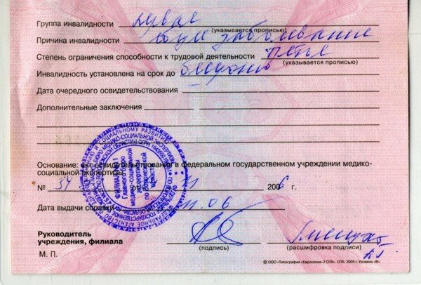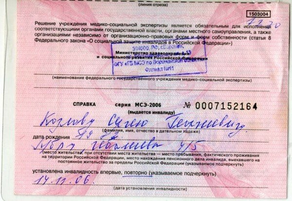 Свидетельство инвалидности